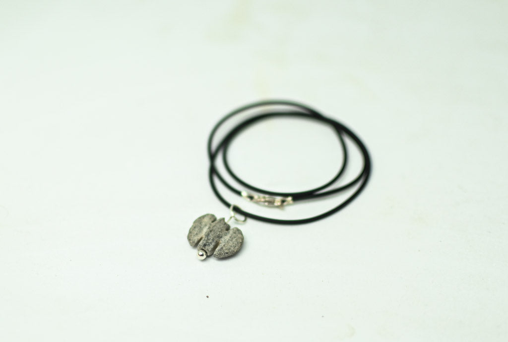 Naszyjnik z amuletem Kamiennego Orła, wykonany z kauczuku oraz kamienia, z wisiorkiem o wymiarach 1,7 x 1,3 x 0,5 cm. Zatrzask typu Lobsterlock wykonany ze srebra (925). Całkowita długość naszyjnika wynosi 42 cm, zachowany w doskonałym stanie, co widoczne jest na załączonych zdjęciach.