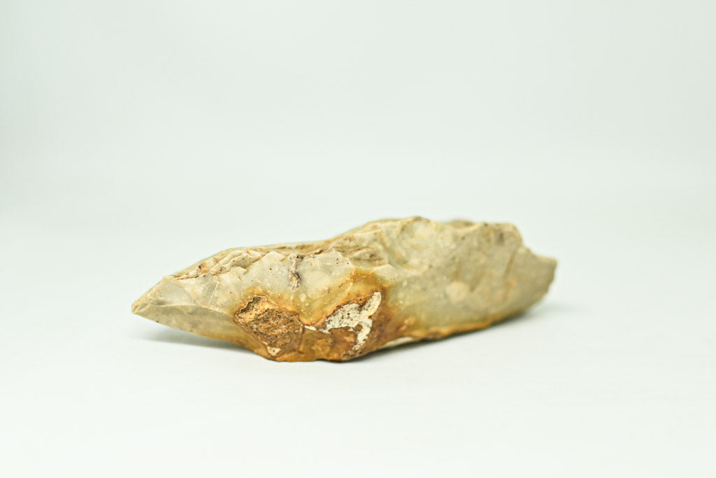 Narzędzie wykonane z krzemienia o wymiarach 14 x 4,2 cm. Kamienie tego typu służyły do kopania i odrywania bloków krzemiennych, co stanowiło ważny etap w obróbce materiału podczas okresu neolitu.