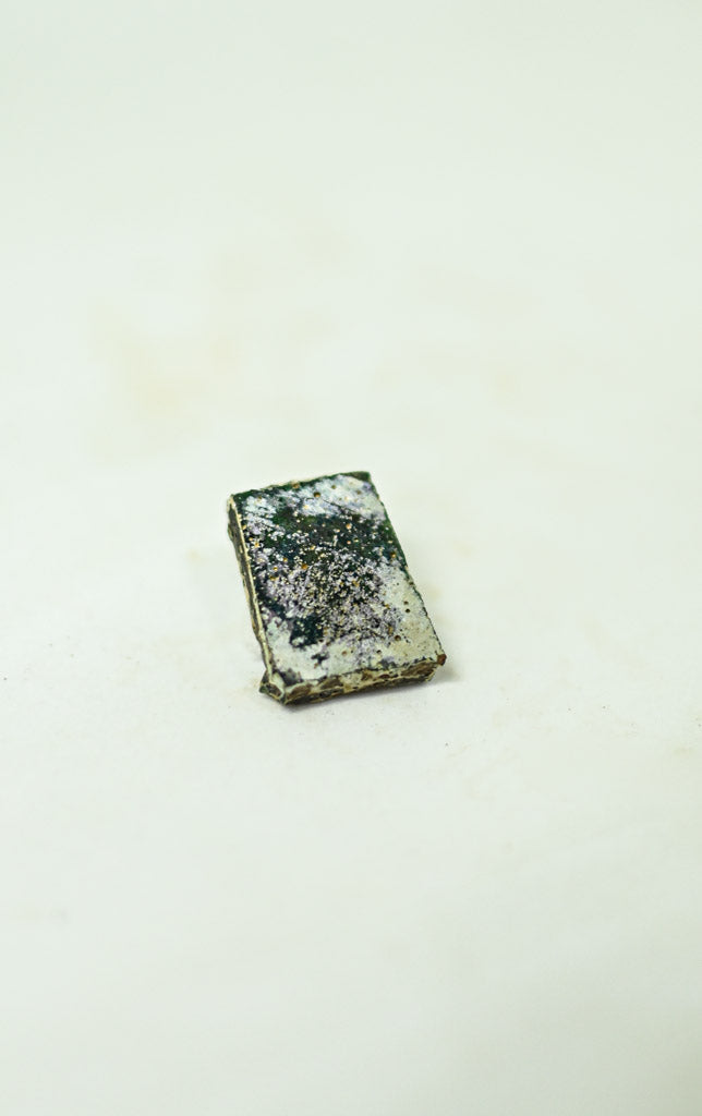 Płytka szklana z czasów starożytnego Rzymu, datowana na I-II wiek n.e. Obiekt wykonany ze szkła ma długość 3,8 cm i zachowany jest w dobrym stanie.