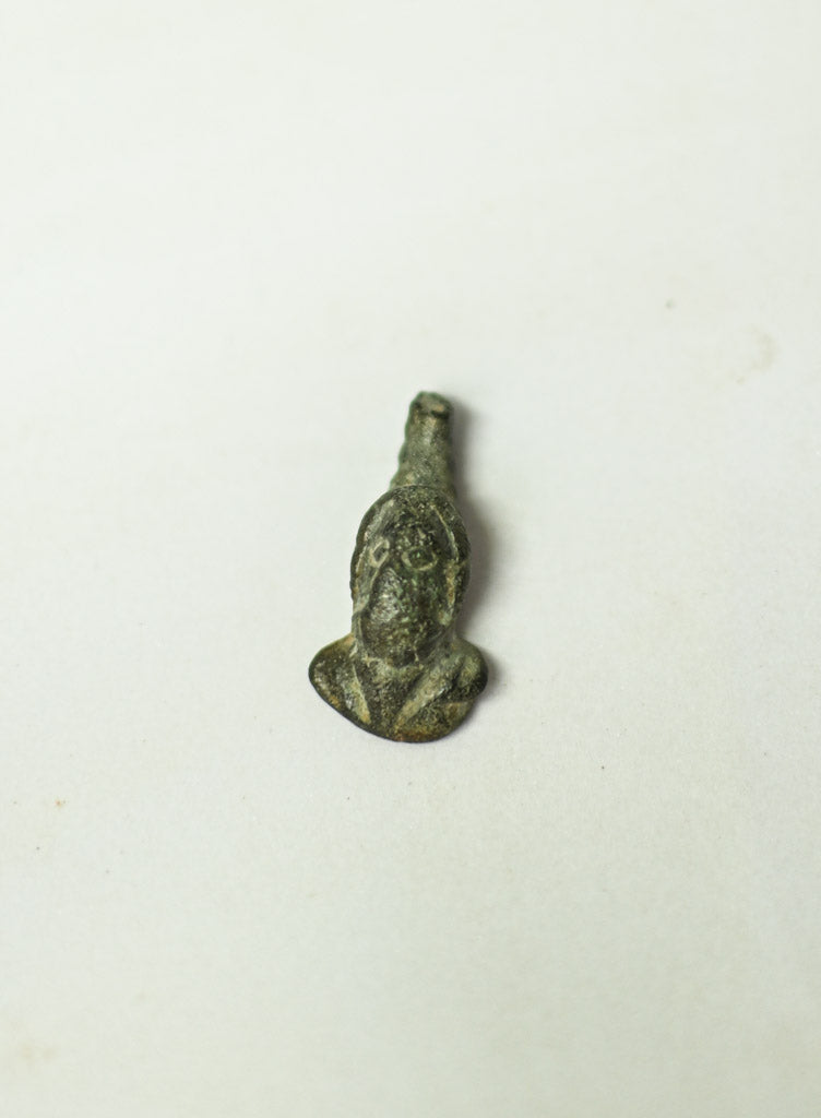 Popiersie boga Marsa, rzymskiego boga wojny, wykonane z brązu, datowane na okres I-III wiek n.e. Jest to niezwykle interesujący egzemplarz, będący reprezentacją zarówno bóstwa, jak i rzymskiej sztuki. Popiersie ukazuje doskonale wykonane detale, z wyraźnymi cechami charakterystycznymi dla wizerunków Marsa w rzymskiej kulturze. Górna patyna nadaje mu dodatkowego uroku i świadczy o jego autentyczności i wieku.