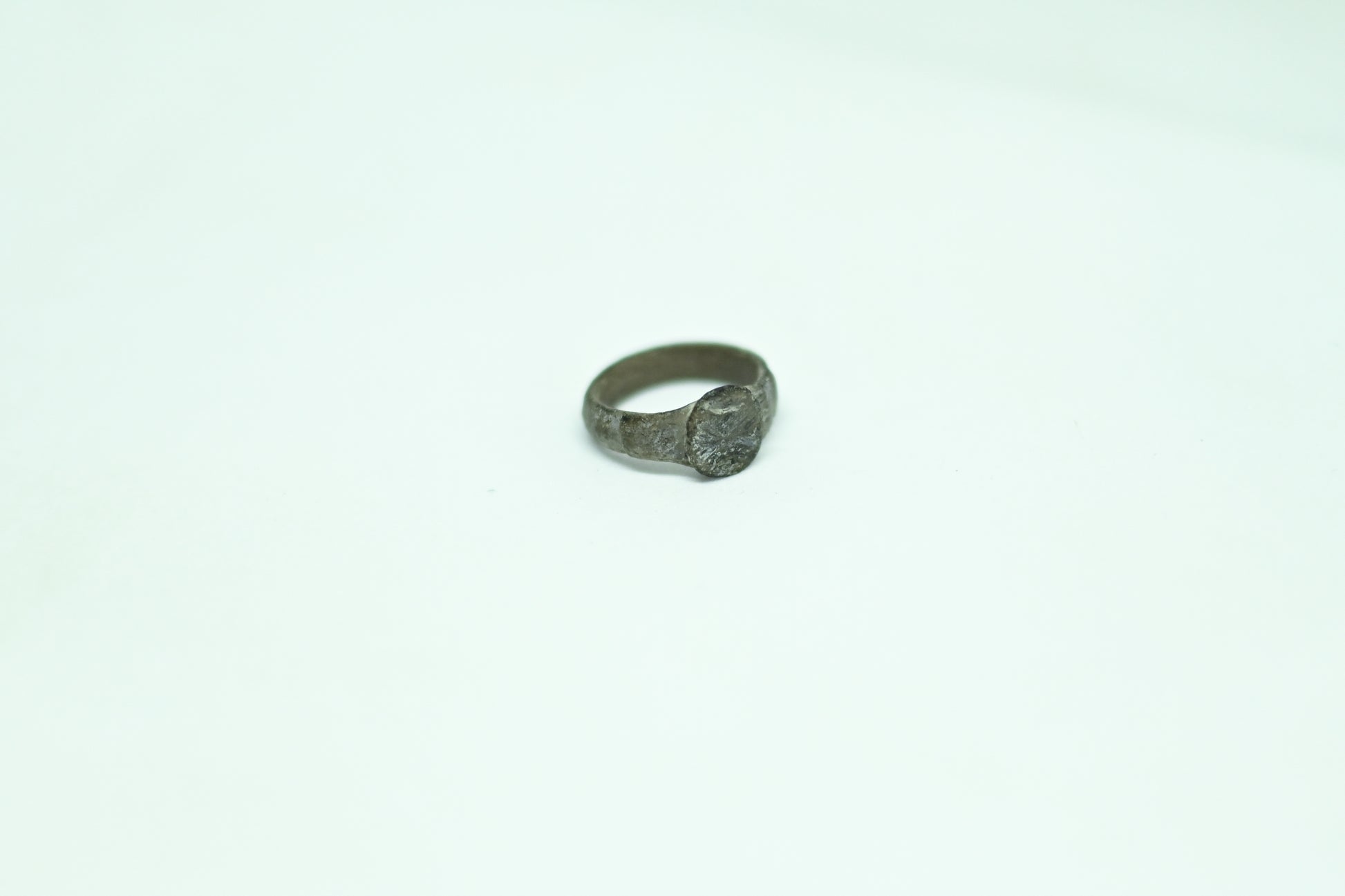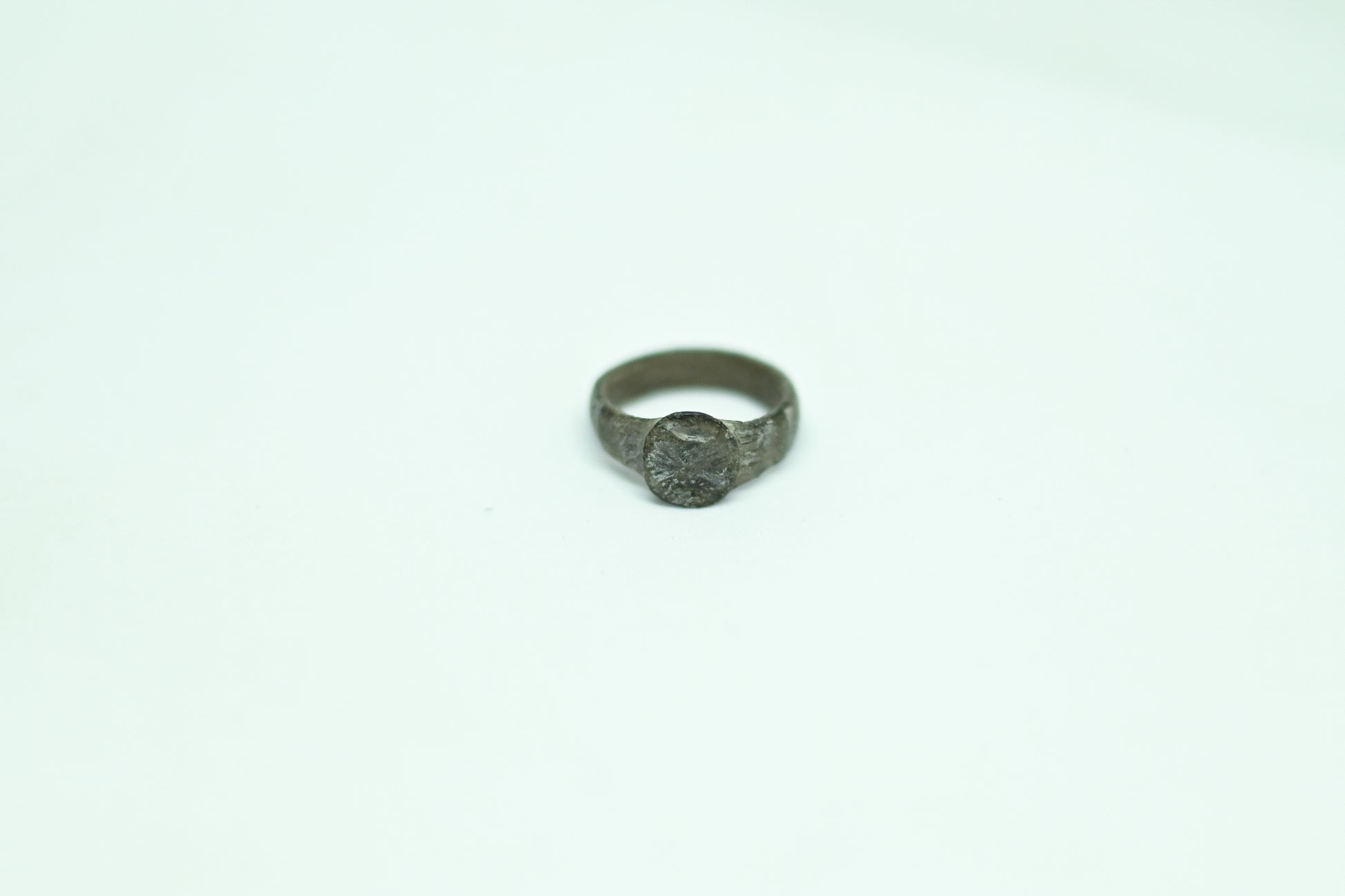 Starożytny rzymski sygnet wykonany z brązu, datowany na okres I–III w. n.e. Sygnet posiada zdobienie, co sugeruje, że mógł mieć zarówno znaczenie estetyczne, jak i symboliczne.